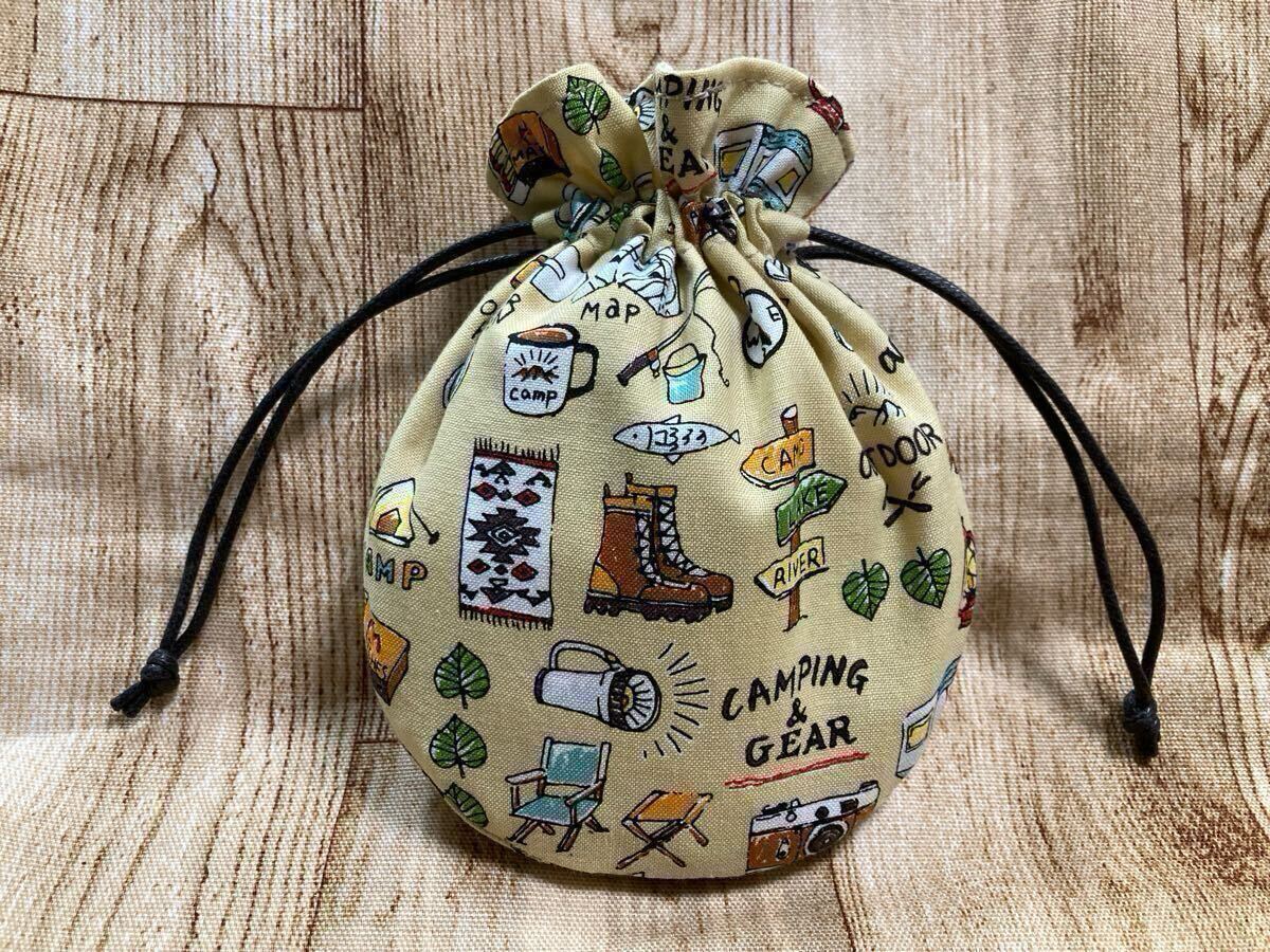 - 巾着袋 巾着 アウトドア アウトドアグッズ キャンプ 丸底 ハンドメイド ミニ巾着