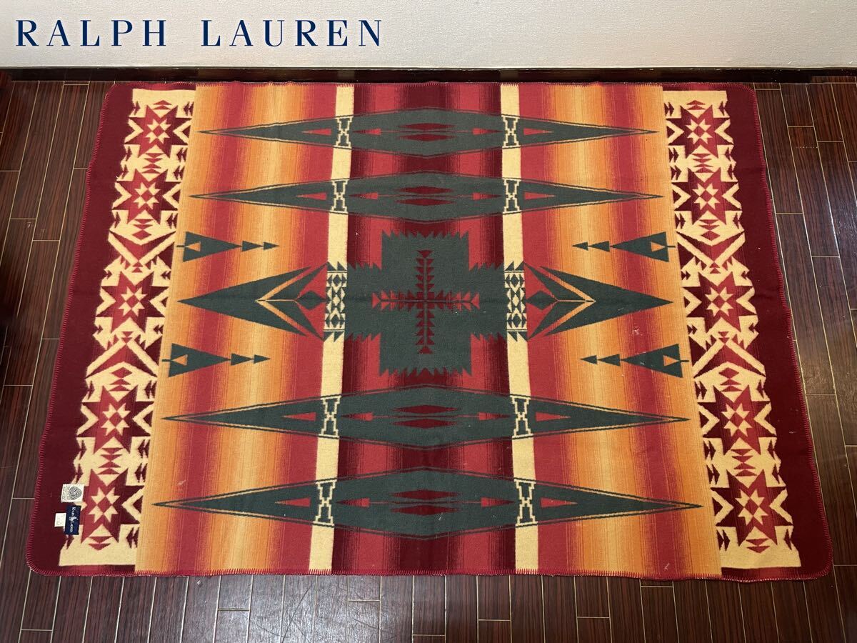 > Ralph Lauren ヴィンテージ ネイティブ柄 ブランケット ウール 100% ナバホ柄 ラルフローレン ビンテージ 毛布 ラグ キャンプ バンライフ