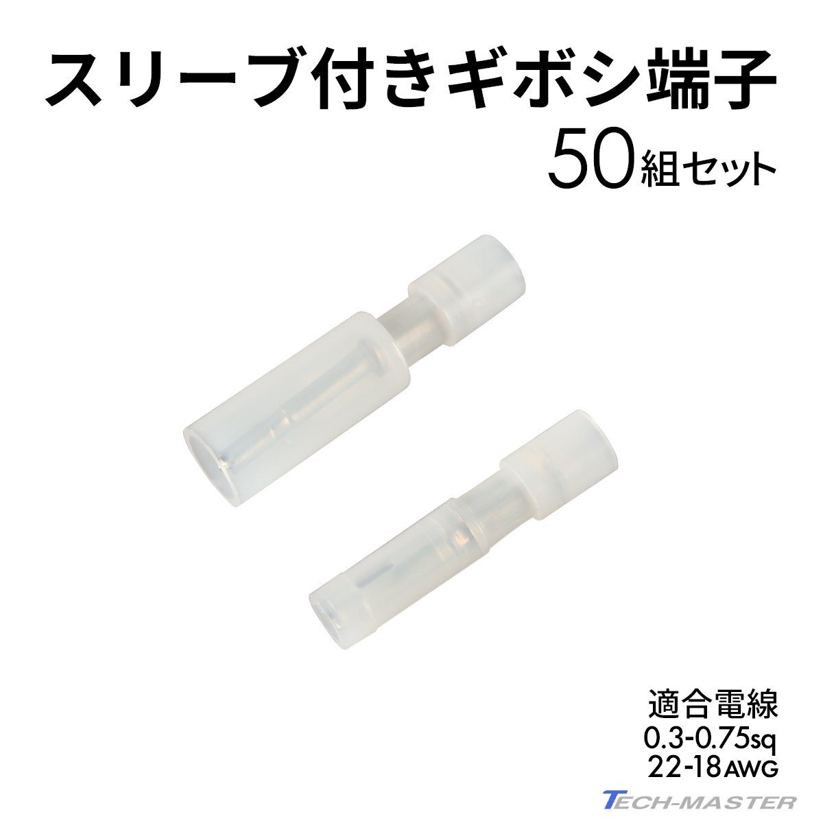 - ギボシ端子 絶縁スリーブ付き 0.3sq- 0.75sq オス メス 50個セット 絶縁被膜 IZ227