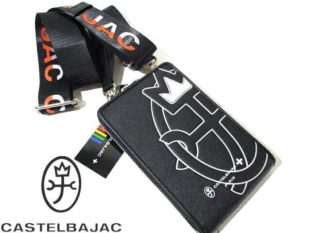 - 定価24200円■ 新品 未使用 即決! カステルバジャック 牛革 サコッシュ ショルダーバッグ 黒 家紋 CASTELBAJAC ブラック レザー