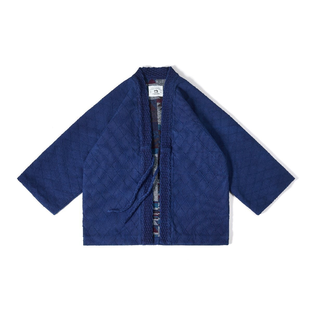 - 手作り 刺し子 藍染め カバーオール 19oz 綿100% 羽織 ワークジャケット ゆったり 半纏 法被 褞袍 インディゴ パッチワーク 秋冬服 厚手 M