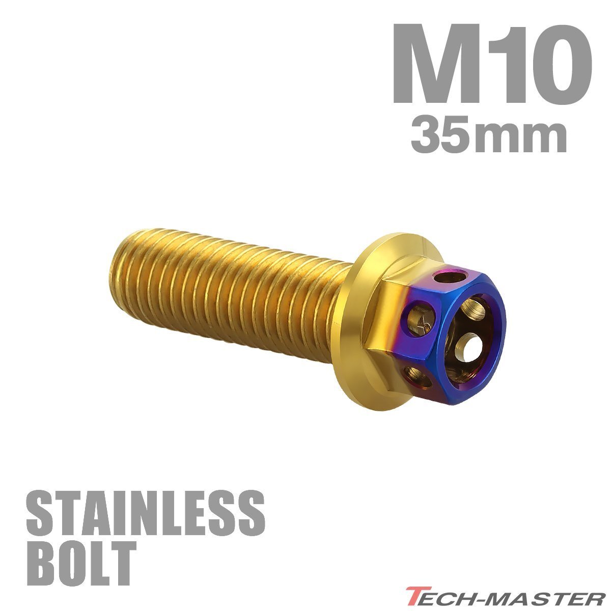 > M10×35mm P1.25 フランジボルト ヘキサゴンヘッド ステンレス ゴールド×焼きチタンカラー エンジン 車 バイク カスタム 1個 TB0825