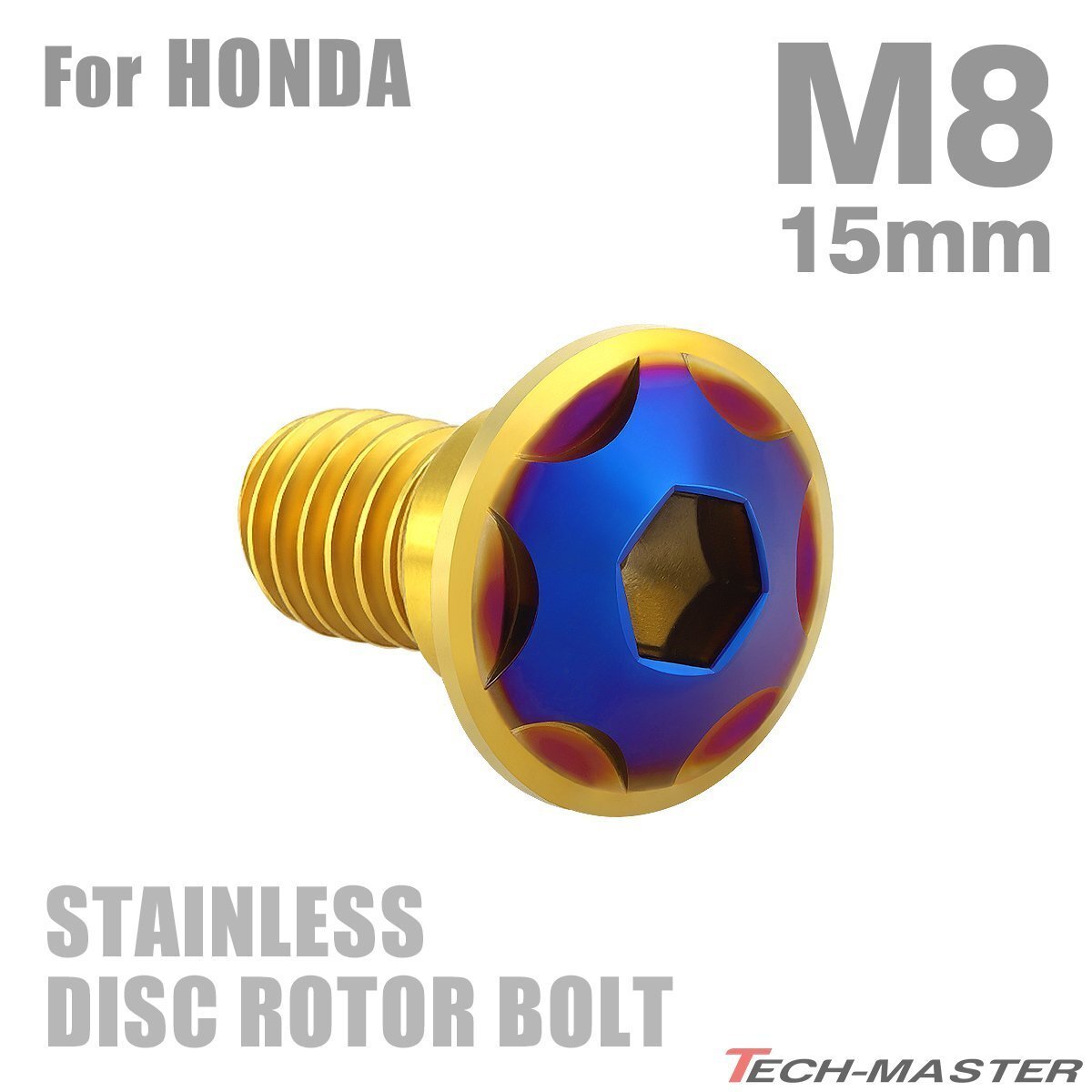 > M8×15mm P1.25 ブレーキディスク ローター ボルト スターヘッド ステンレス ホンダ車用 HONDA ゴールド×ブルー カスタム 1個 TD0311