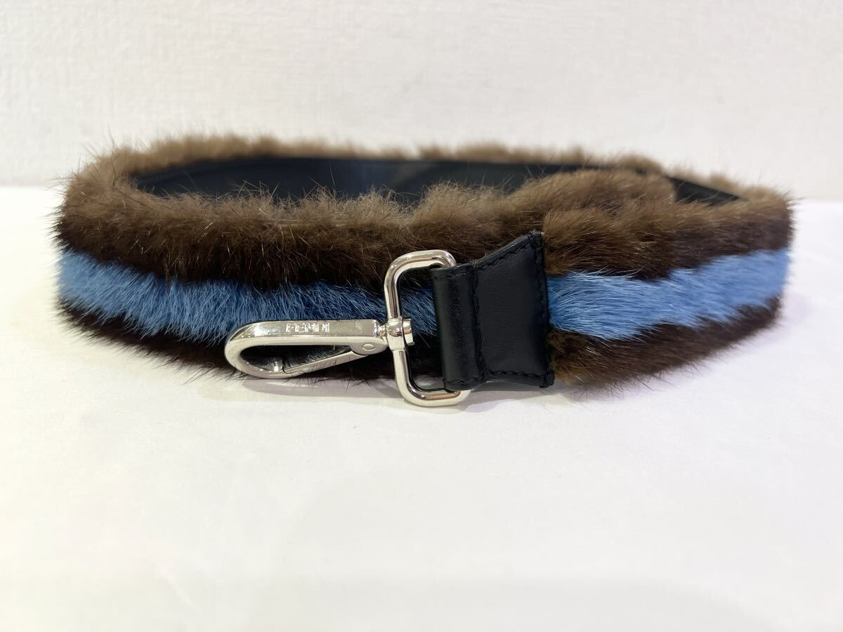 - 【超美品】FENDI フェンディ ストラップユー ミンクファー ブラウン ブルー ショルダーストラップ 60サイズ(443)