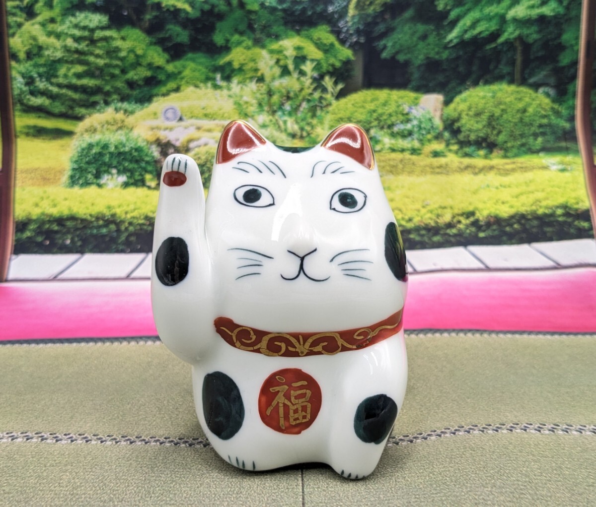- 縁起物 招き猫 有田焼 波佐見焼 置物 右手上げ 白