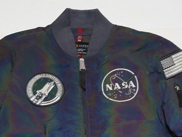 - MJ93アルファALPHAナサNASAアメリカ古着フライトジャケットMA1ミリタリージャケット中綿入ナイロンジャケットSグレー系xレインボー