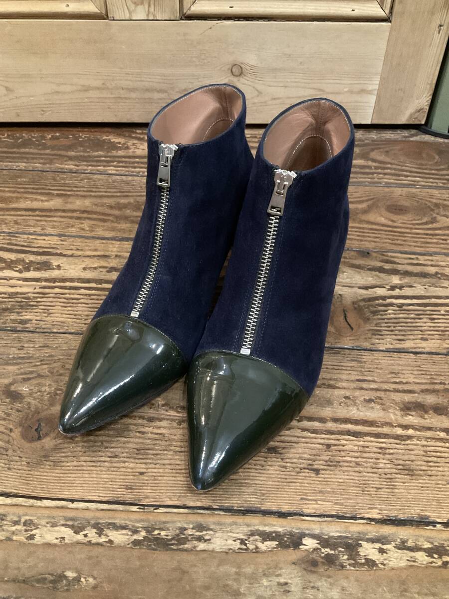 - ◎マルニ MARNI ショートブーツ 38 ネイビー グレー