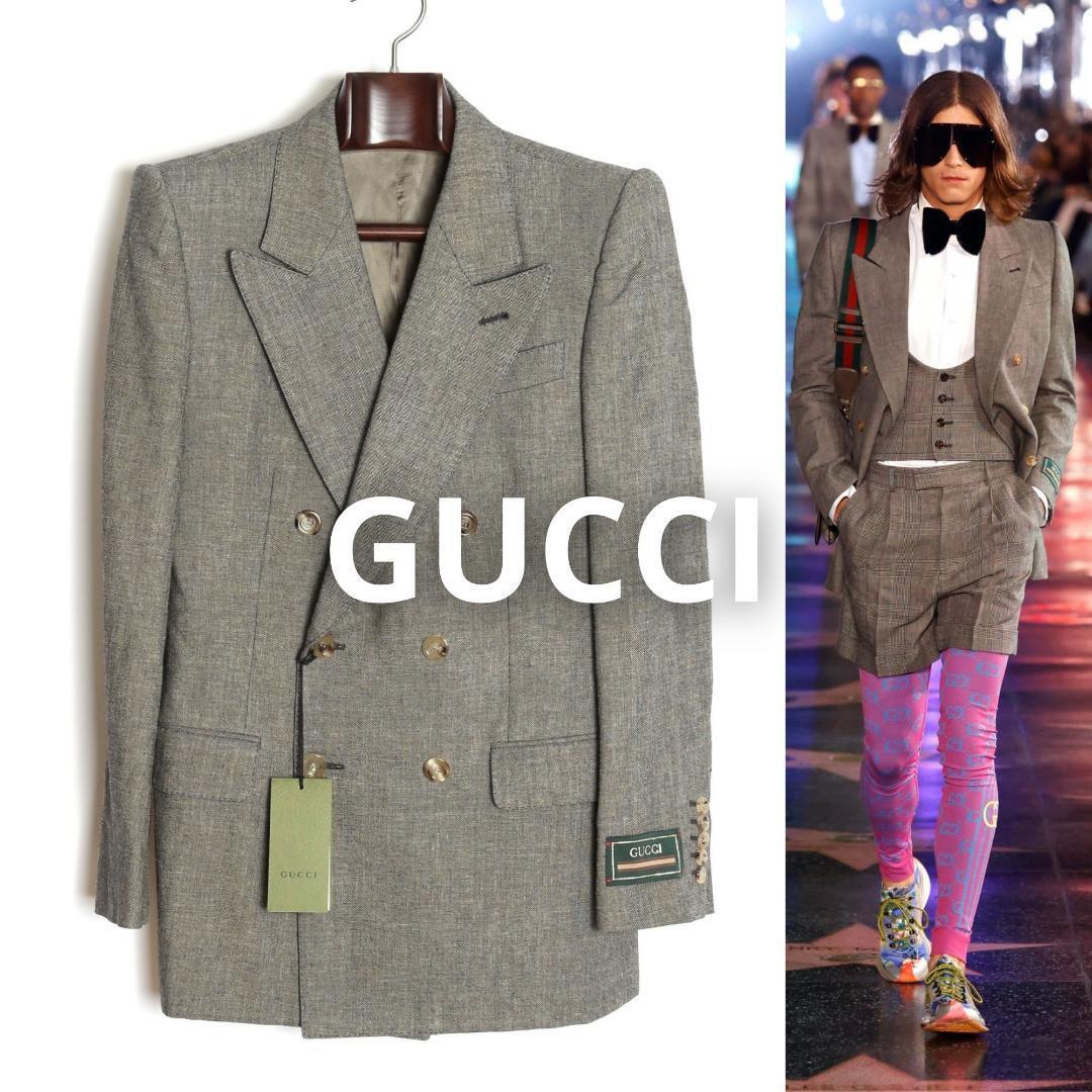 - GUCCI 22SS 国内正規品 ウール/リネン ダブルブレスト 46 フルキャンバス総毛芯テーラードジャケット パワーショルダーVALENTINO/FENDI出身