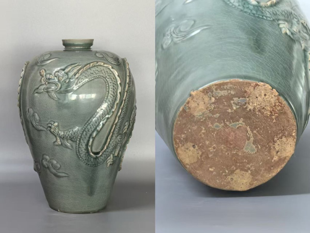 - ▼渡鶴羽▼K984コレクター放出 朝鮮古美術 高麗磁 李朝時代 古高麗 高麗青磁彫龍梅瓶