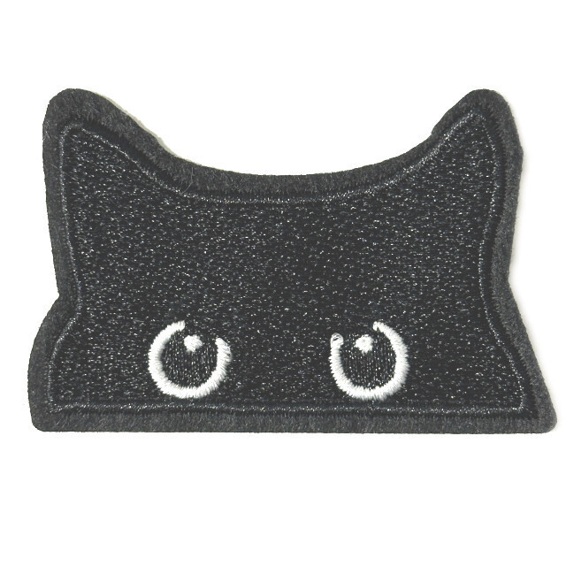 - w8446 のぞき見 黒猫 ワッペン 刺繍アップリケ 1枚【リメイク 入園入学 手作り布物 手芸材料 ハンドメイド アクセサリー素材】蒸気猫パーツ