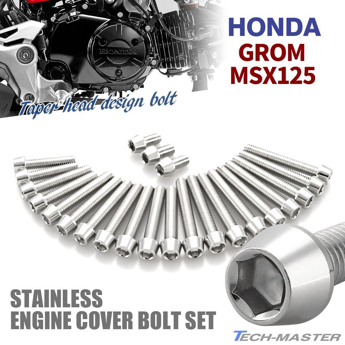 - GROM グロム MSX125 エンジンカバー クランクケース ボルト 23本セット ステンレス製 テーパーヘッド シルバーカラー TB6013