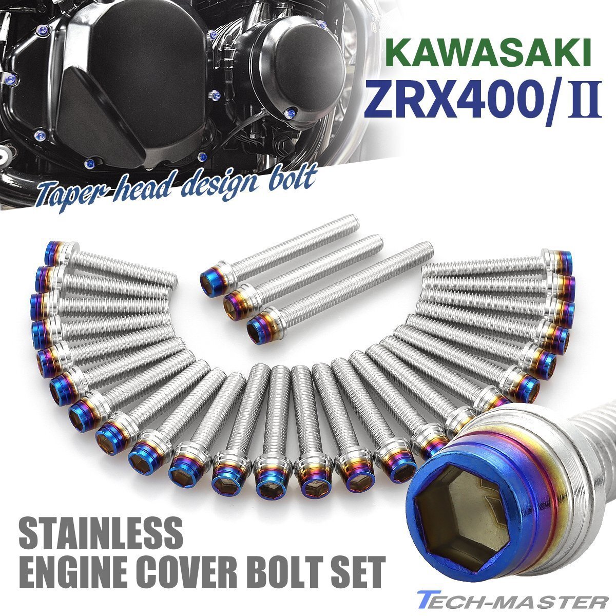 > ZRX400/II エンジンカバーボルト 27本セット ステンレス製 テーパーシェルヘッド シルバー×焼きチタンカラー TB8211