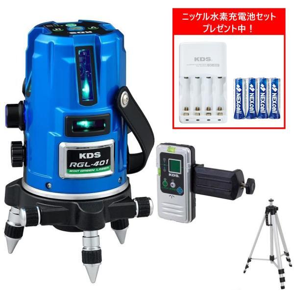 > (ニッケル水素充電池セットプレゼント) ムラテックKDS RGL-401RSA ミントグリーンレーザー墨出器 (本体・受光器・三脚・新ケース付き)