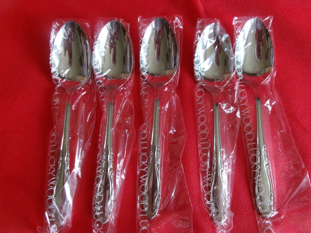 - 未使用品 ラッキーウッド 18-10ステンレス スプーン 5本セット