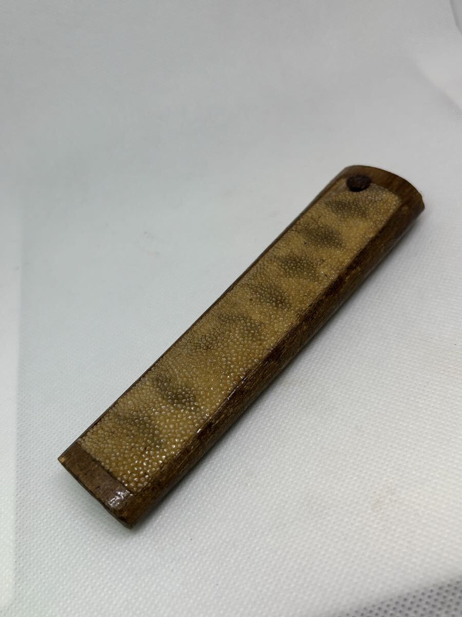 - TA207 日本刀部品 柄 鮫皮巻き 木製 重さ33.78g 長さ13.7cm 幅3.0cm 時代物 刀装具