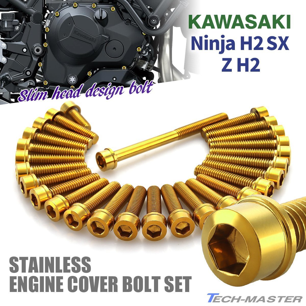 > Z H2/Ninja H2 SX/H2 SX SE/H2 SX SE+ エンジンカバーボルト 27本セット ステンレス製 スリムヘッド ゴールドカラー TB8912