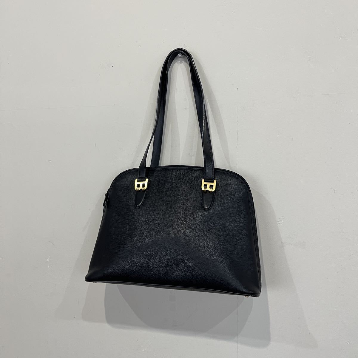 - 〈SS〉BALLY バリー レザー ハンドバッグ トートバッグ ブラック系 肩掛け 鞄 黒 ブラック 金 金具 27×36 レディース ブランドバッグ