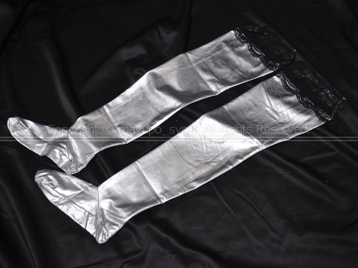- C1886-45★新品 レース付きニーハイソックス 光沢シルバーメタリック FREE