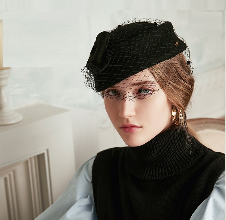 - 新作カクテル帽 トーク帽 ベール付き トークハット フォーマル ウェディングヘッドドレス 髪飾り 冠婚葬祭ミニハットエレガント お色選択可