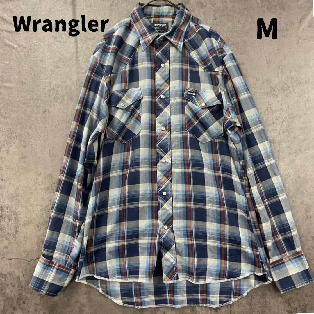 - ラングラー M 紺系 チェック 長袖シャツ ウエスタンスタイル 古着【5656】