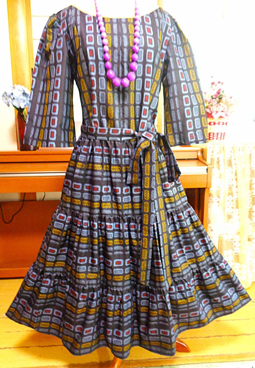 - ◆着物リメイク◆大島カート3段チュニックス&ワンピース◆袷より♪~Mやや強◆