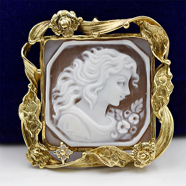 - K18シェルカメオ ペンダント 10.1g D:0.05ct