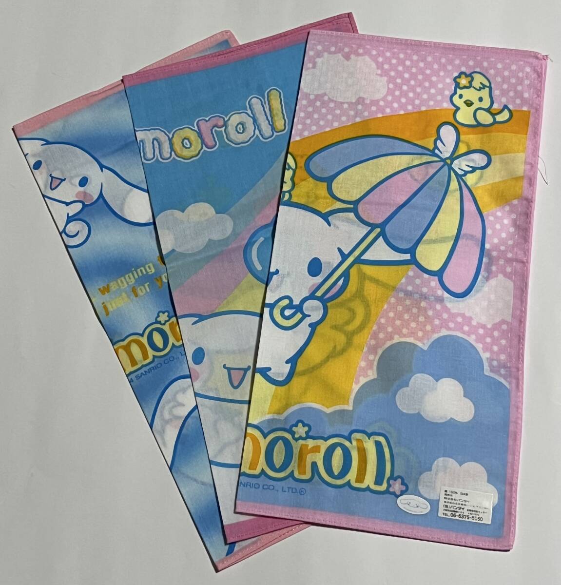 > 2004年 サンリオ シナモロール シナモン ハンカチ3枚セット お子様 レア 虹 レインボー ピンク サックス 水色 バルーン