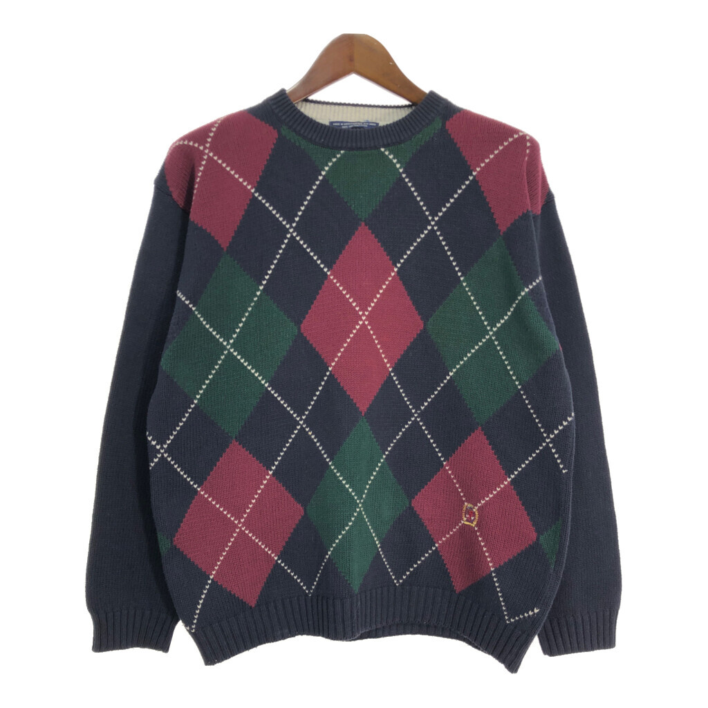- 90年代 TOMMY HILFIGER トミーヒルフィガー コットンニット セーター アーガイルチェック ネイビー (メンズ M) 中古 古着 S9317