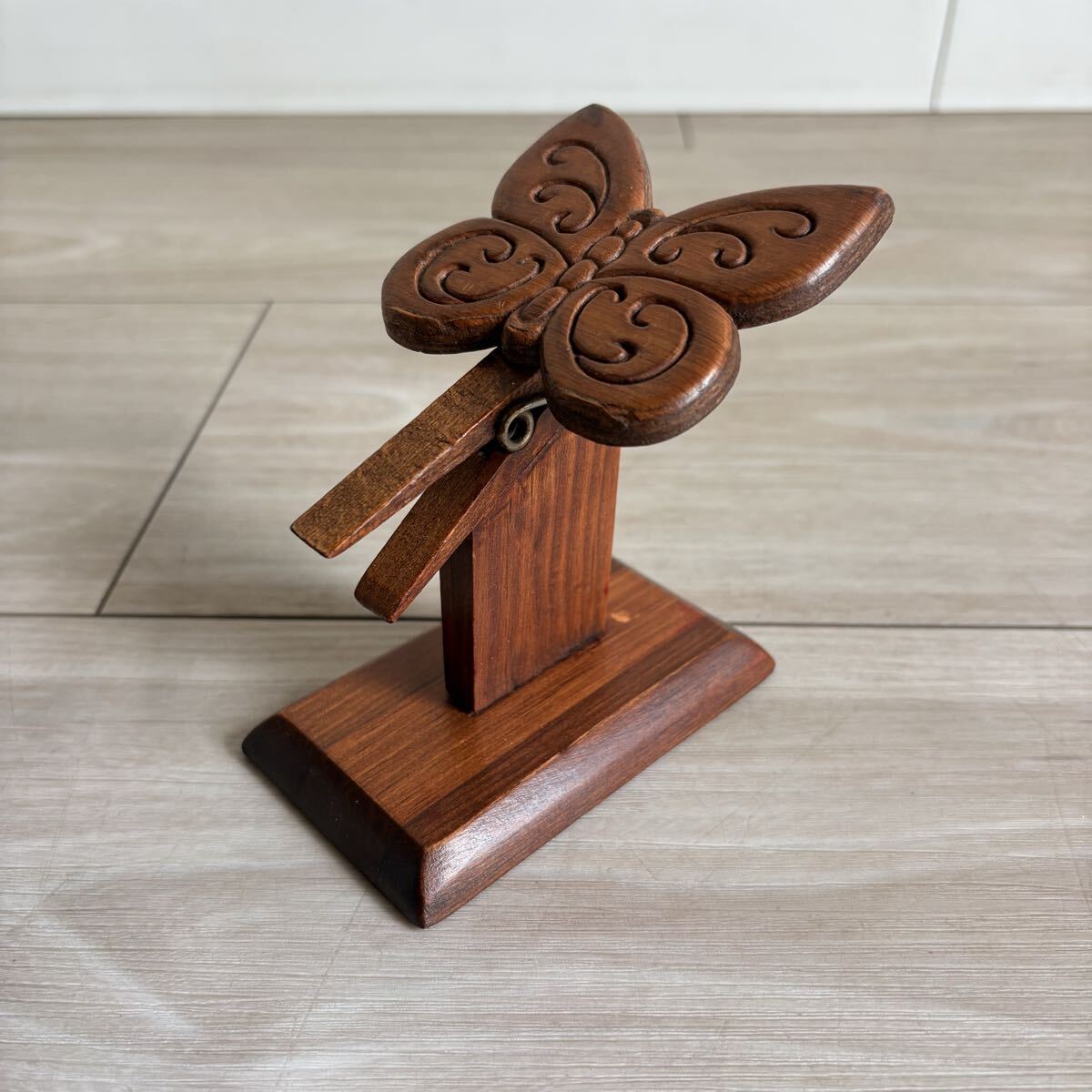 - アメリカビンテージ 木製 蝶型メモクリップ バタフライレシピクリップ オブジェ