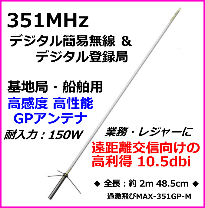 - 【M】351MHz デジタル簡易 無線専用設計 基地局用 遠距離通信 アンテナ 新品 M型コネクター / デジ簡 無線機 に♪過激飛びMAX