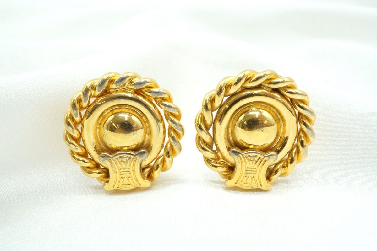 > セリーヌ ヴィンテージ イヤリング トリオンフ ラウンド 丸型 アクセサリー 金 ゴールド CELINE 3581j