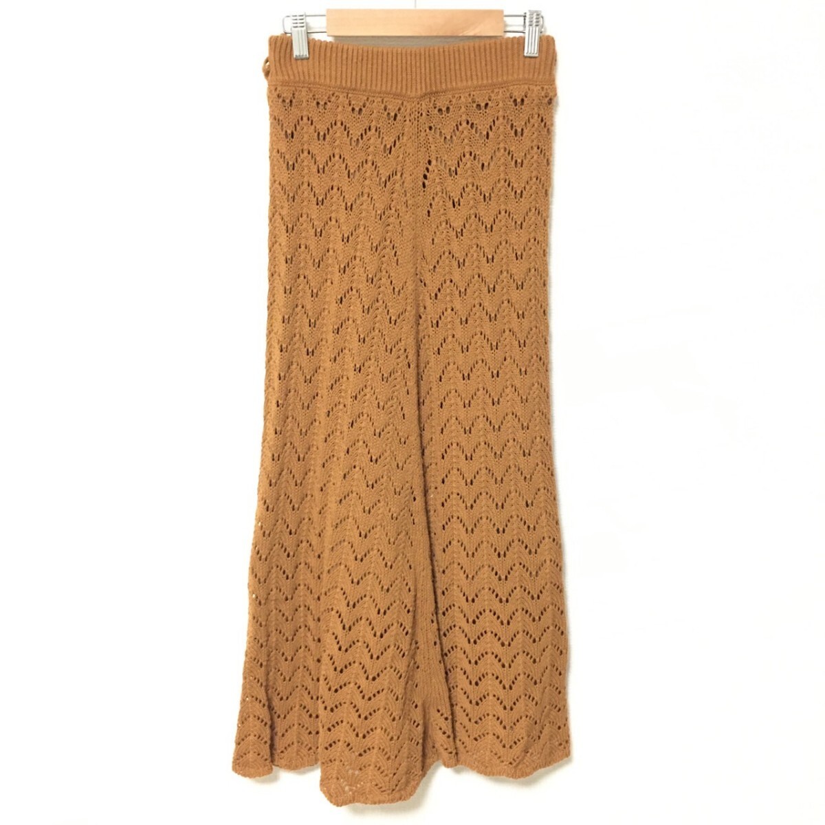 - W147【Mila Owen】ミラオーウェン ニット ロング スカート 膝下丈 フレア レース シースルー ブラウン レディース サイズ 0 (S位)/fa