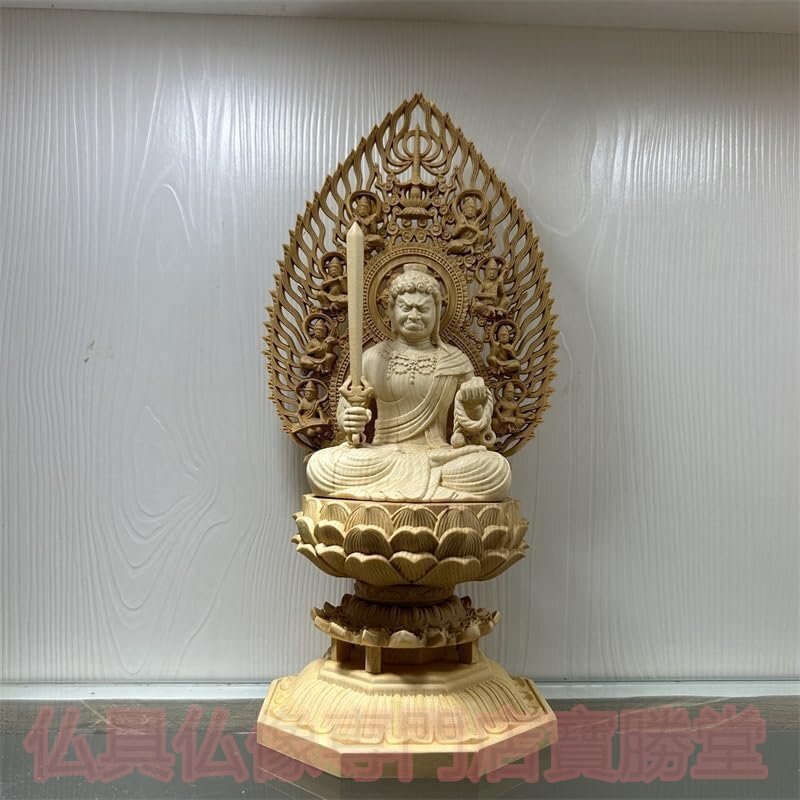 - 【寶勝堂】不動明王 座像 桧木 お守り本尊 -酉年ご本尊様 木彫仏像 木彫り 木製総高28cm