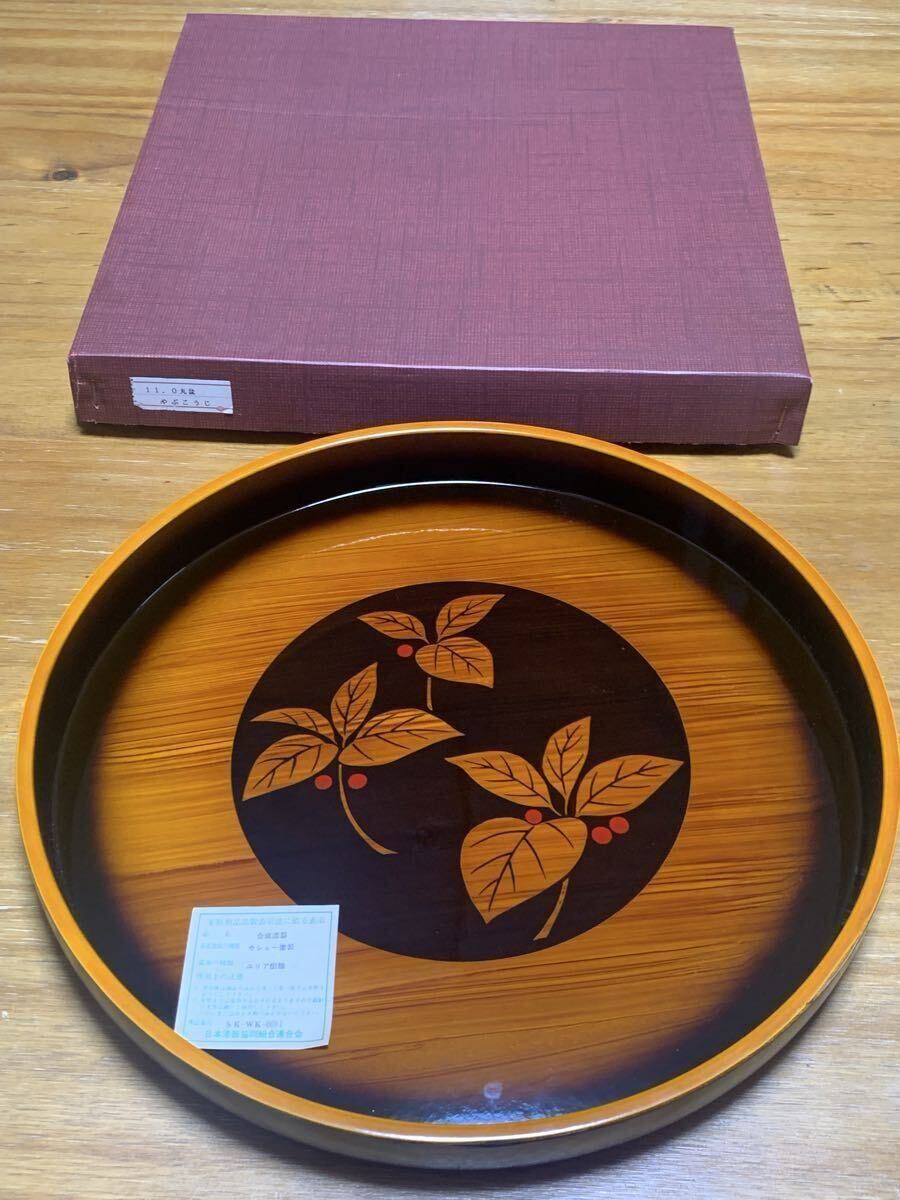 - 丸盆 藪柑子 やぶこうじ 大きなお盆 32.5㎝ 合成漆器 菓子盆 茶道具