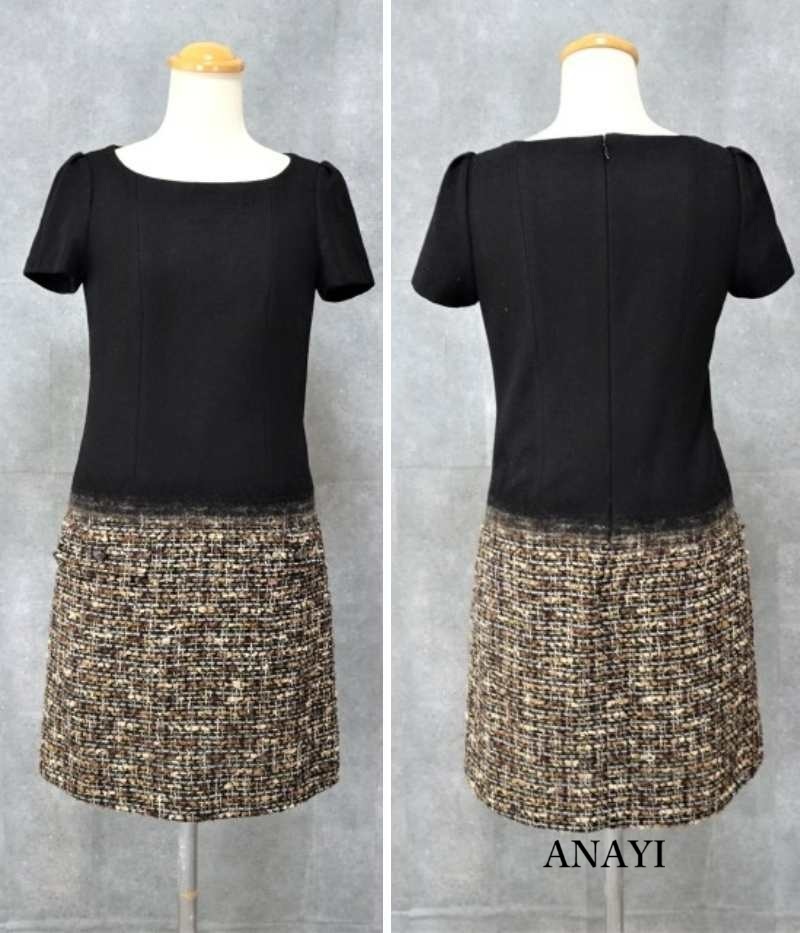 > 【ANAYI|アナイ】Jules Tournier ツイード切替ワンピース バイカラーワンピース ツイードワンピース 36 S 即決