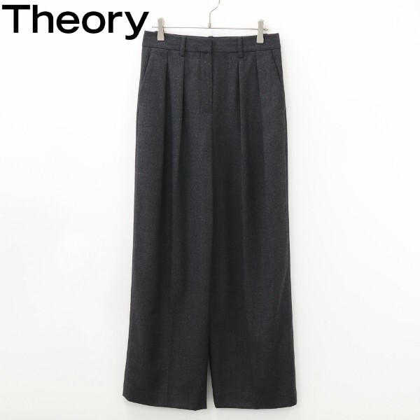 > 【KA138】美品◆Theory セオリー フランネル タック ワイド スラックス パンツ チャコールグレー 0