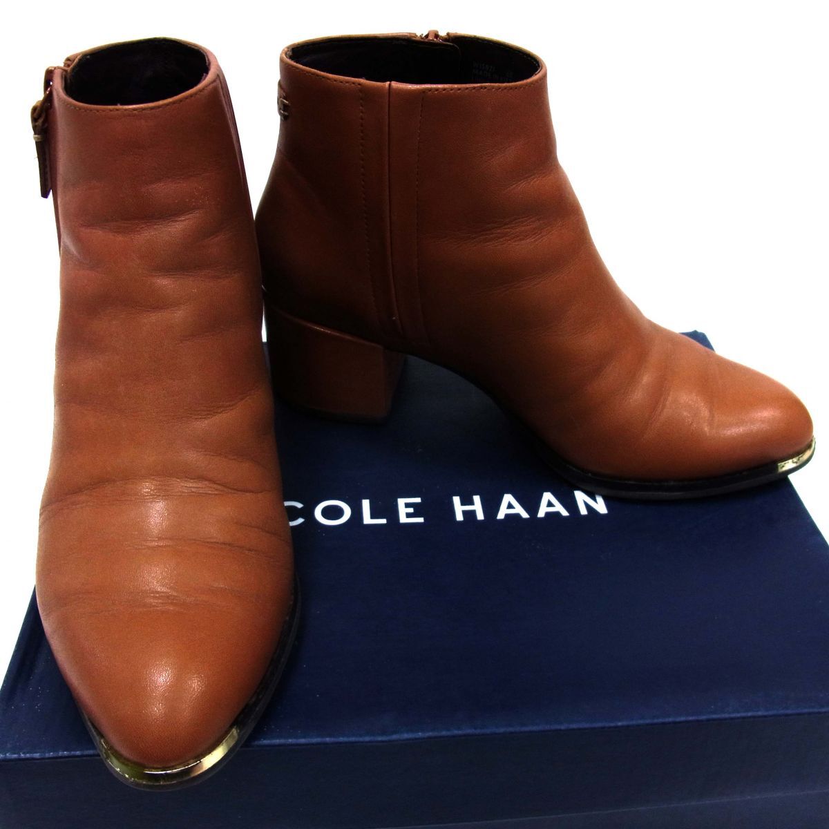 - 定価49,500円◆COLE HAAN コールハーン GRANDAMBITION レザー ショートブーツ 55mm サイドジップ レディース