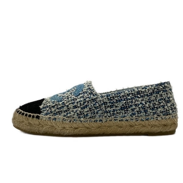 - シャネル CHANEL フラットシューズ 38 G34546 - コットン、リネン ライトブルー×ブルー×ダークネイビー ココマーク 靴