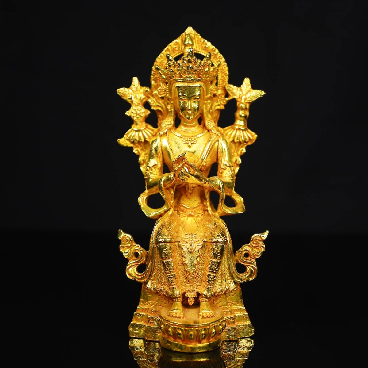 - 蔵友旧蔵出 銅製 塗金 背光 彌勒菩薩像 希少珍品 貴重品 置物 古賞物 密宗密教 供養品 仏教美術品