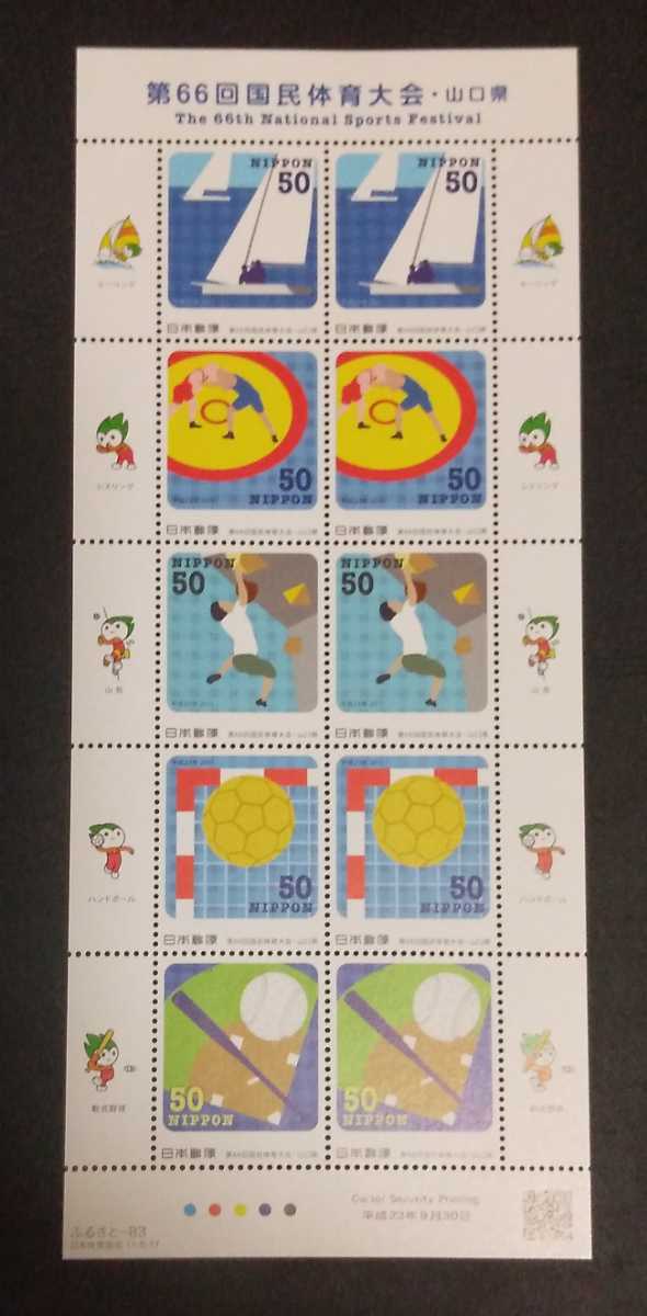 - 2011年・ふるさと切手-第66回国民体育大会シート(山口)解説書付