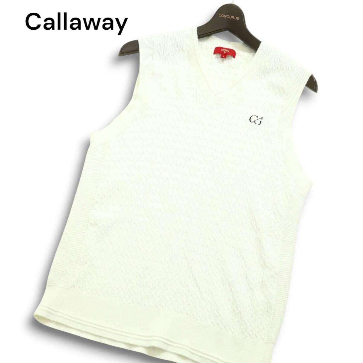 - Callaway キャロウェイ ゴルフ 通年 ケーブル編み★ Vネック ニット ベスト Sz.L メンズ 白