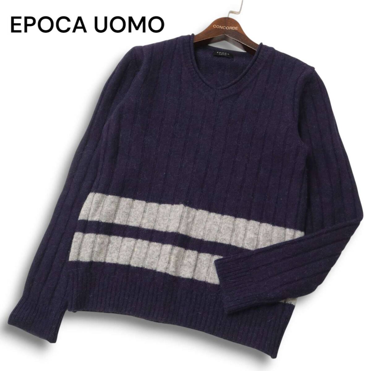 > EPOCA UOMO エポカ ウォモ 秋冬 アルパカ混 ウール★ ボーダー Vネック セーター ニット Sz.50 メンズ ネイビー 日本製