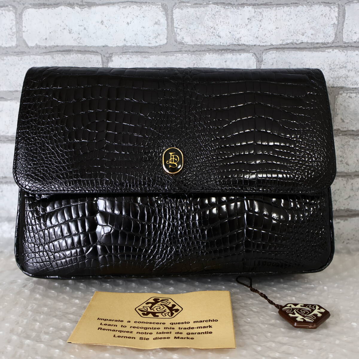 - *美品*イタリア製*JARDIN DES SACS*シャイニークロコダイル*クロコダイル*リアルクロコ*レザー*クラッチバッグ*黒*