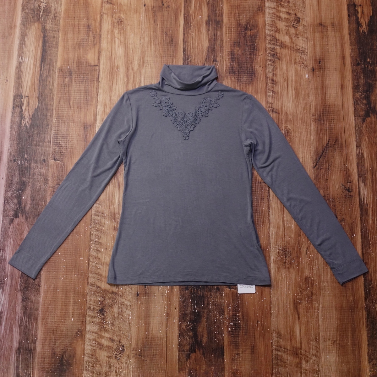 - 未使用 キョウコヒガ KYOKO HIGA レース タートルネックカットソー レディース 長袖 Mサイズ グレー PK4