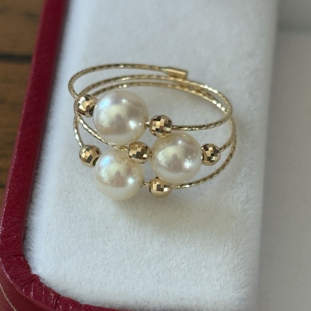 - R40 K18 あこや真珠 3個 リング 指輪 18金