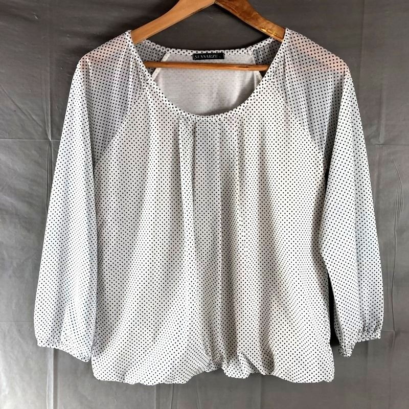 > サンナルツェ SUNNARZE ブラウス カットソー ドット ラウンドネック ホワイト系 Lサイズ 2025082800124
