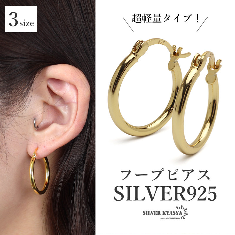 > (24mmタイプ) シルバー925 フープピアス 軽い シルバーピアス ゴールドピアス 18KGP レディース 金アレ対応