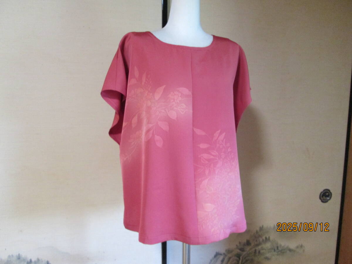 - 新品未仕立ての正絹着物から定番ベストブラウス!着物リメイク!くすみピンク系!花模様!ハンドメイド!同生地で衿付きブラウスも出品中