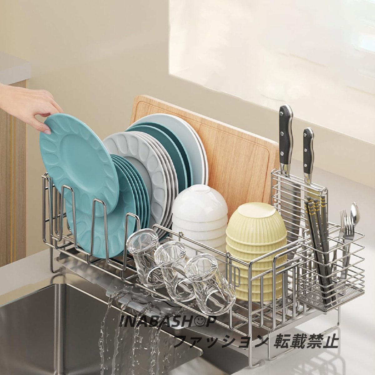 - 水切りラック キッチンラックシンク上 水切りかご : ステンレス水切りカゴ、組み立て簡単、滑り止め設置 横置き、渡せる、大容量調整可能