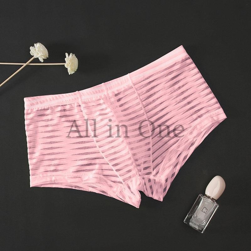 - 97-216-6 透けボーダー メンズ ボクサー パンツ 【ピンクXLサイズ】男性 下着 ショーツ セクシー インナーウェア スケスケ パンツ.2